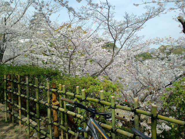 世界遺産と桜とチャリ